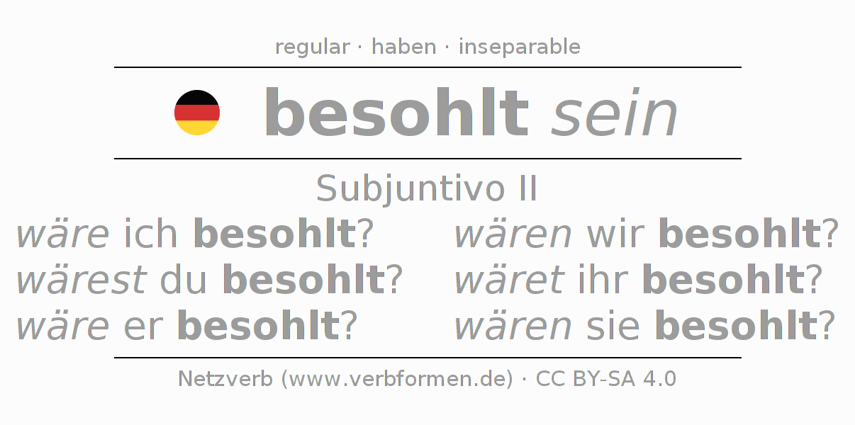 El verbo besohlen, conjugado completamente en todas las personas y números gramaticales en Subjuntivo Pretérito.