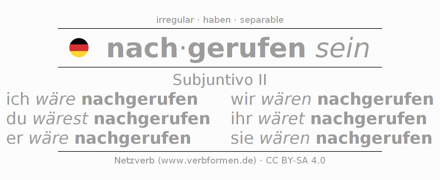 El verbo nachrufen, conjugado completamente en todas las personas y números gramaticales en Subjuntivo Pretérito.