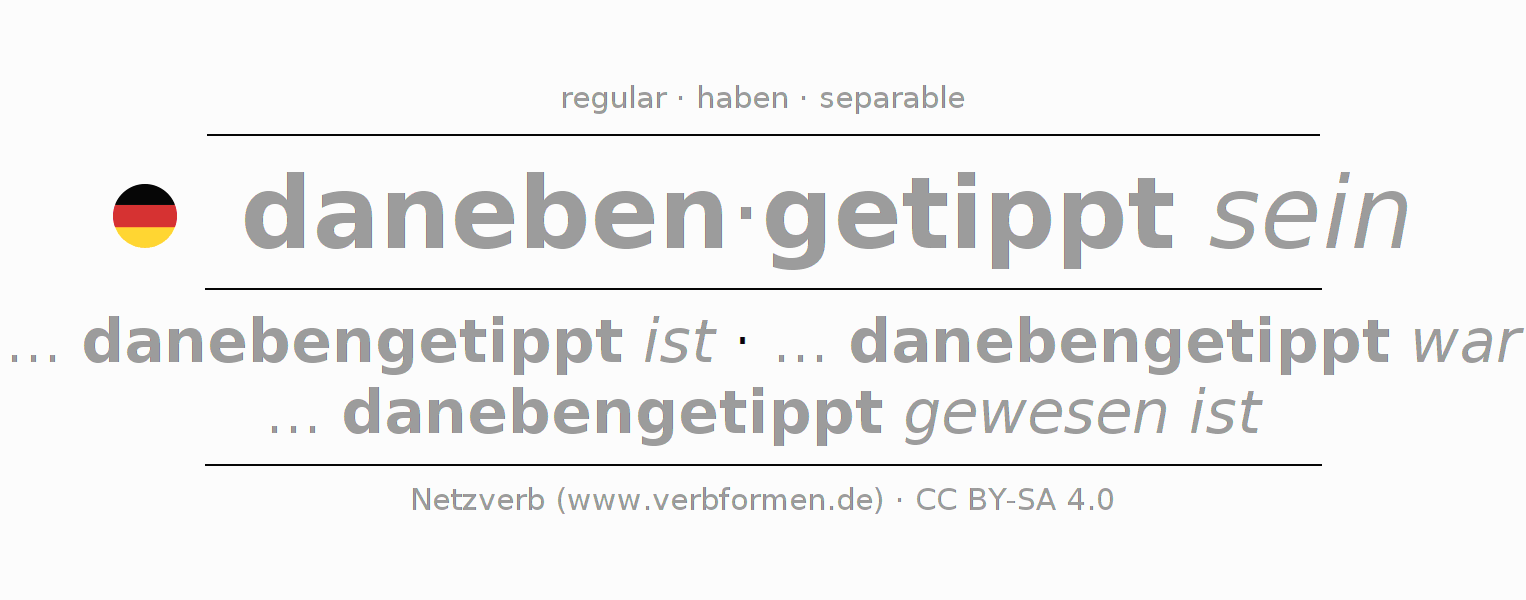 El verbo danebentippen, conjugado completamente en todas las personas y números gramaticales en Subjuntivo Pretérito.