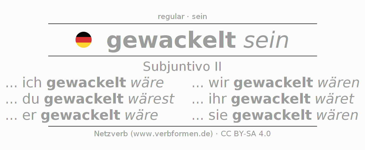 El verbo wackeln (ist), conjugado completamente en todas las personas y números gramaticales en Subjuntivo Pretérito.