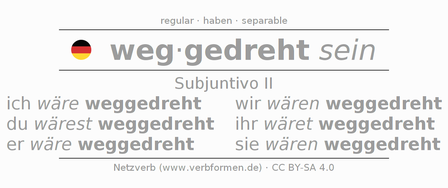 El verbo wegdrehen, conjugado completamente en todas las personas y números gramaticales en Subjuntivo Pretérito.