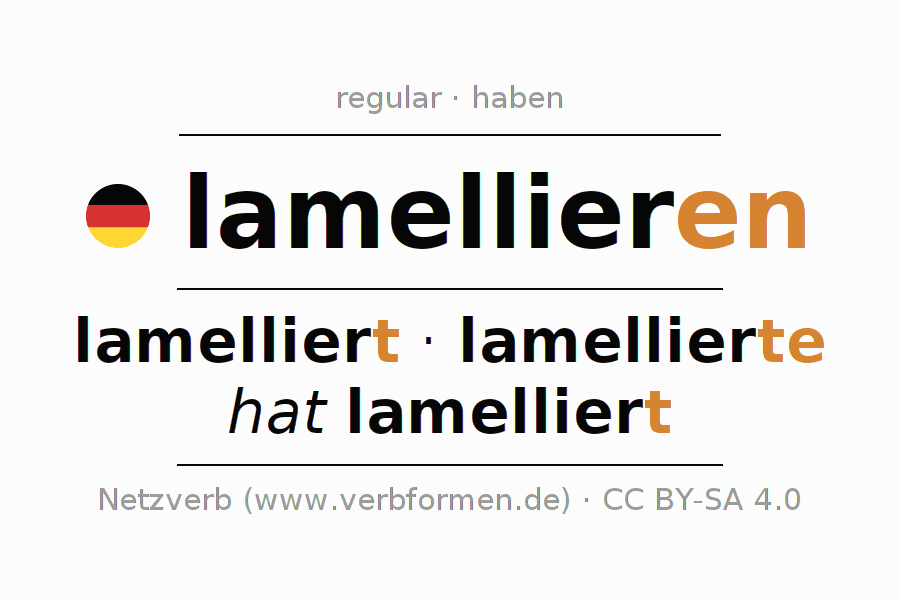 - Presente: lamellier(e) (du), lamellieren wir, lamelliert (ihr), lamellieren Sie
