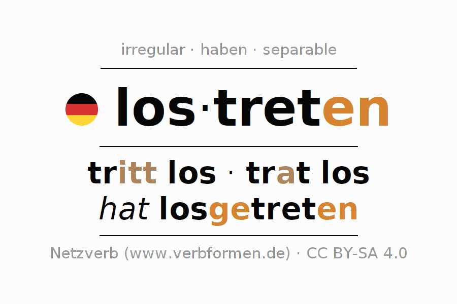 tritt los · trat los · hat losgetreten