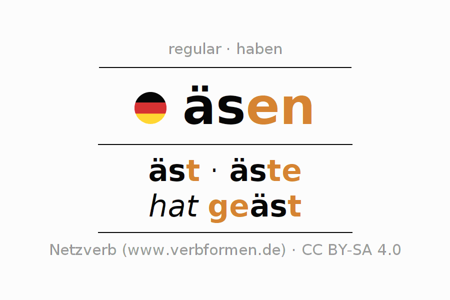 Las tablas de verbos muestran todas las construcciones del verbo äsen de forma clara en una tabla.