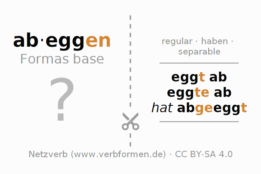 Las hojas de trabajo te ayudan para practicar con la conjugación de los verbos abeggen en la escuela o de forma autodidacta. El material de estudio es Open Educational Resources (OER), es decir, libre de licencias CC BY-SA 4.0 y pude ser descargado y utilizado de forma gratuita, por ejemplo para la escuela. Con este fin tenemos para ti varios tipos de hojas de trabajo para los verbos abeggen en forma de tablas de conjugación, acertijos y juegos. Todo el material esta disponible de forma gratuita para descargas PDF, imágenes y paginas web interactivas. Junto con los ejercicios hay innumerables ejemplos abeggen que te ayudan en el uso de los verbos.