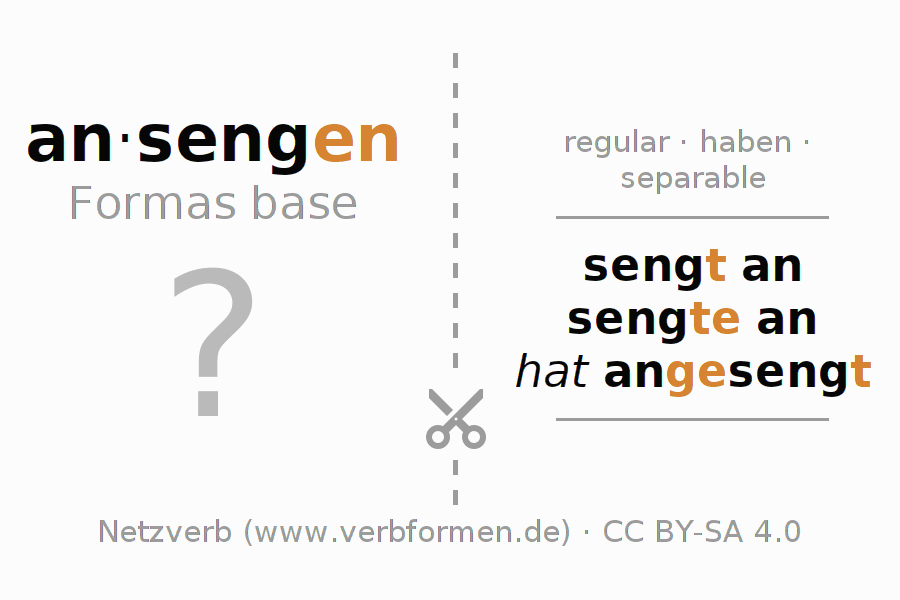 Las hojas de trabajo te ayudan para practicar con la conjugación de los verbos ansengen en la escuela o de forma autodidacta. El material de estudio es Open Educational Resources (OER), es decir, libre de licencias CC BY-SA 4.0 y pude ser descargado y utilizado de forma gratuita, por ejemplo para la escuela. Con este fin tenemos para ti varios tipos de hojas de trabajo para los verbos ansengen en forma de tablas de conjugación, acertijos y juegos. Todo el material esta disponible de forma gratuita para descargas PDF, imágenes y paginas web interactivas. Junto con los ejercicios hay innumerables ejemplos ansengen que te ayudan en el uso de los verbos.