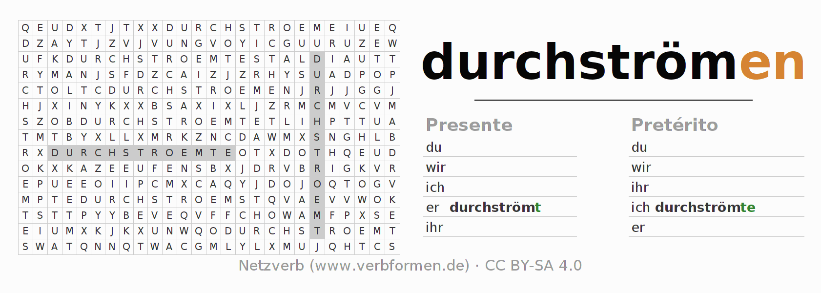 Con este juego de palabras cruzadas puedes aprender de manera desafiante la conjugación del verbo alemán durchströmen.