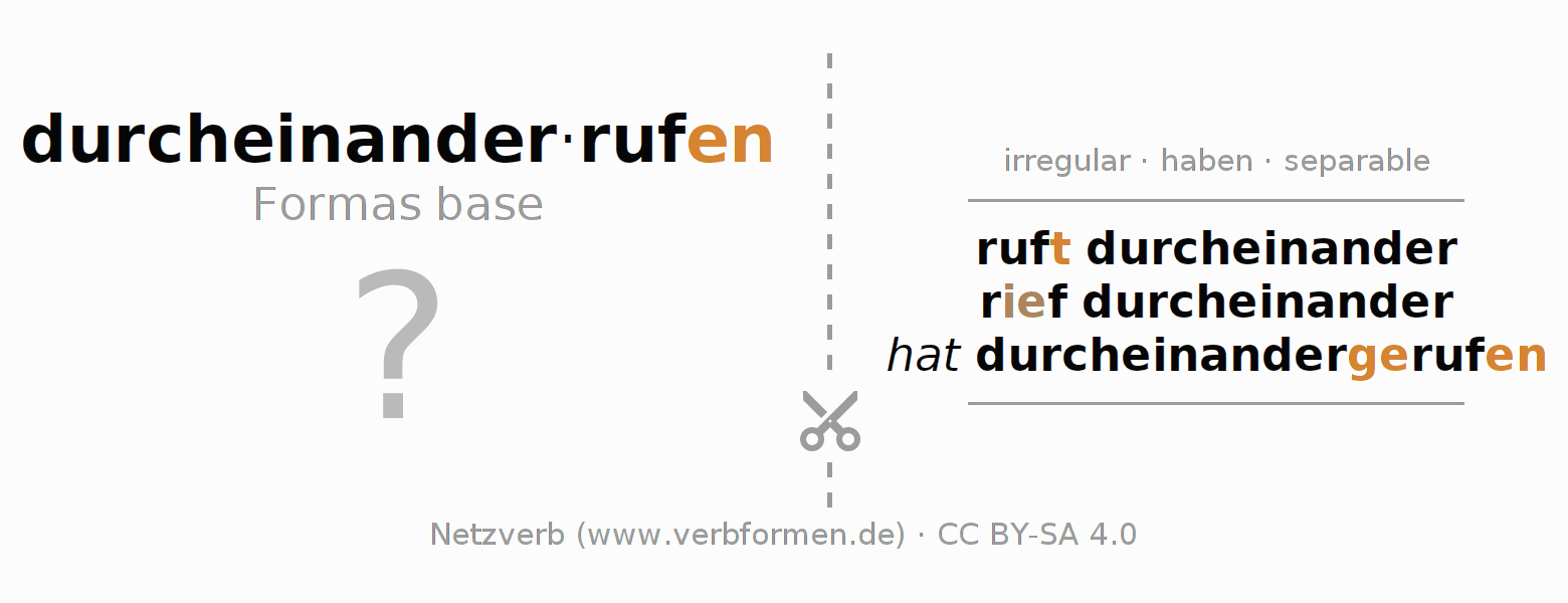 Hojas de trabajo para la conjugación del verbo durcheinanderrufen