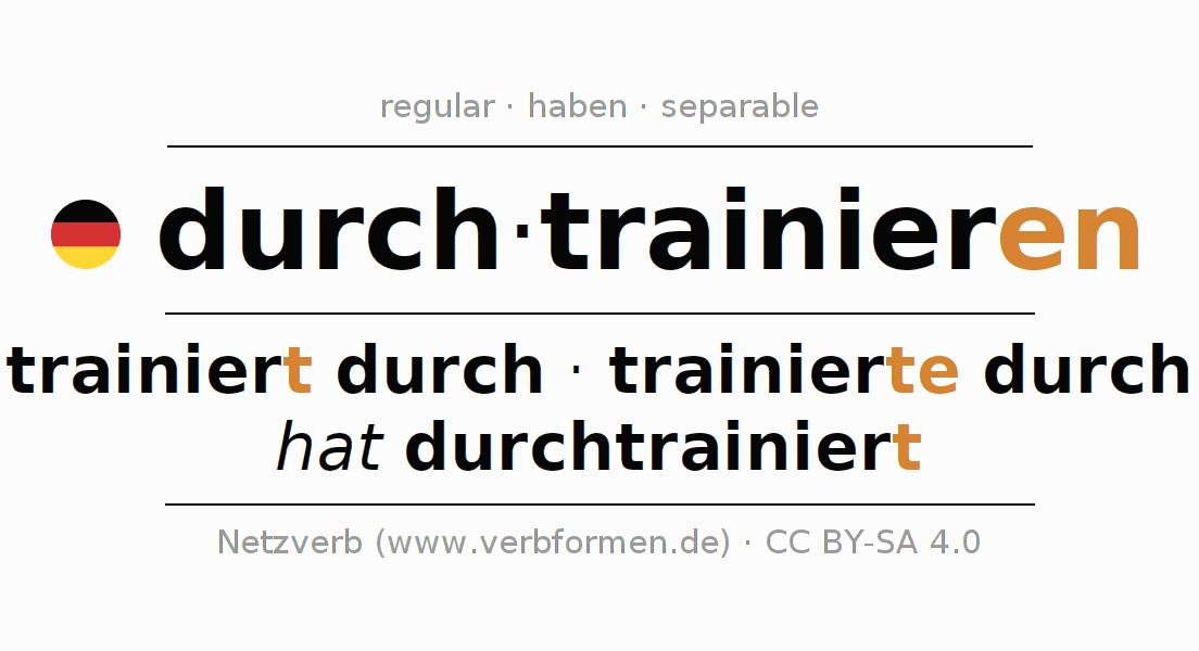 Las tablas de verbos muestran todas las construcciones del verbo durchtrainieren de forma clara en una tabla.