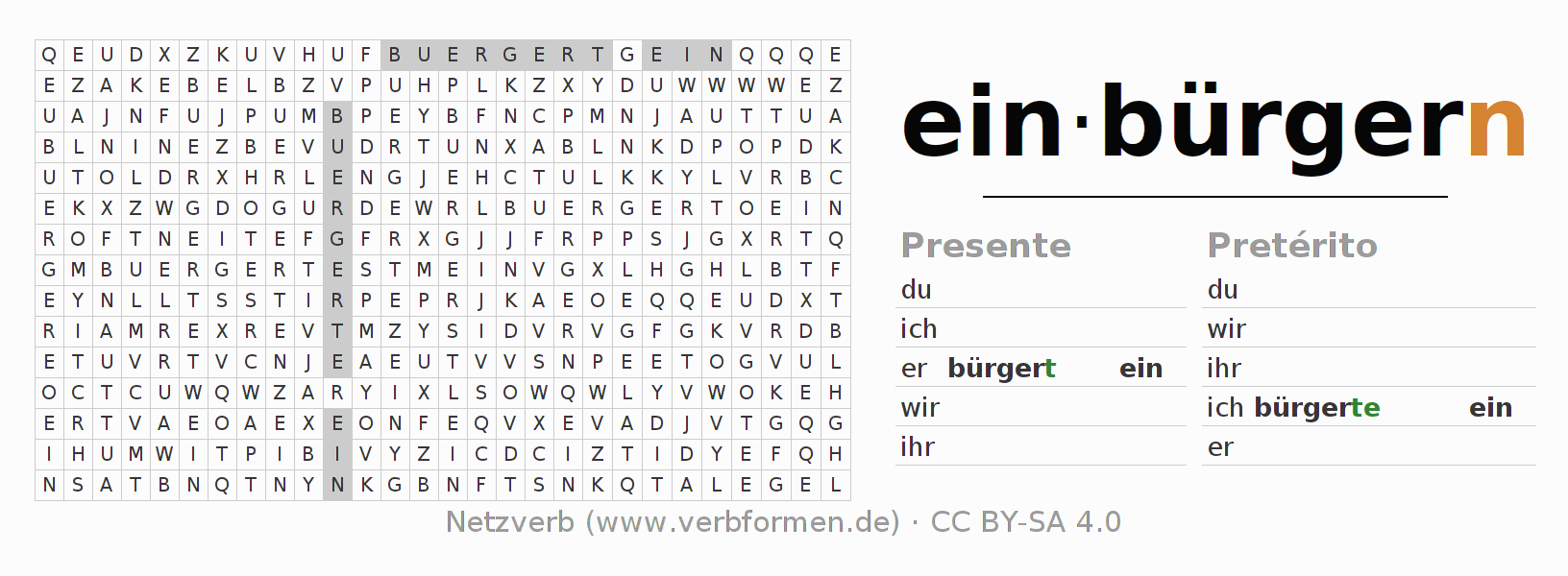 Juego de palabras cruzadas para todas las construcciones del verbo alemán einbürgern