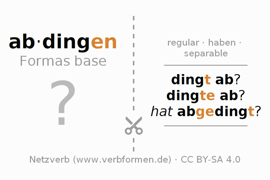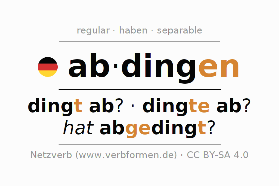 Las tablas de verbos muestran todas las construcciones del verbo abdingen de forma clara en una tabla.