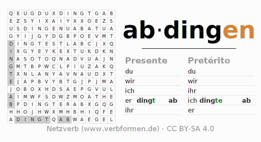 Con este juego de palabras cruzadas puedes aprender de manera desafiante la conjugación del verbo alemán abdingen.