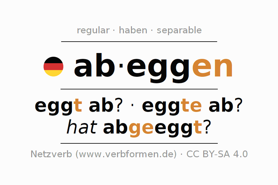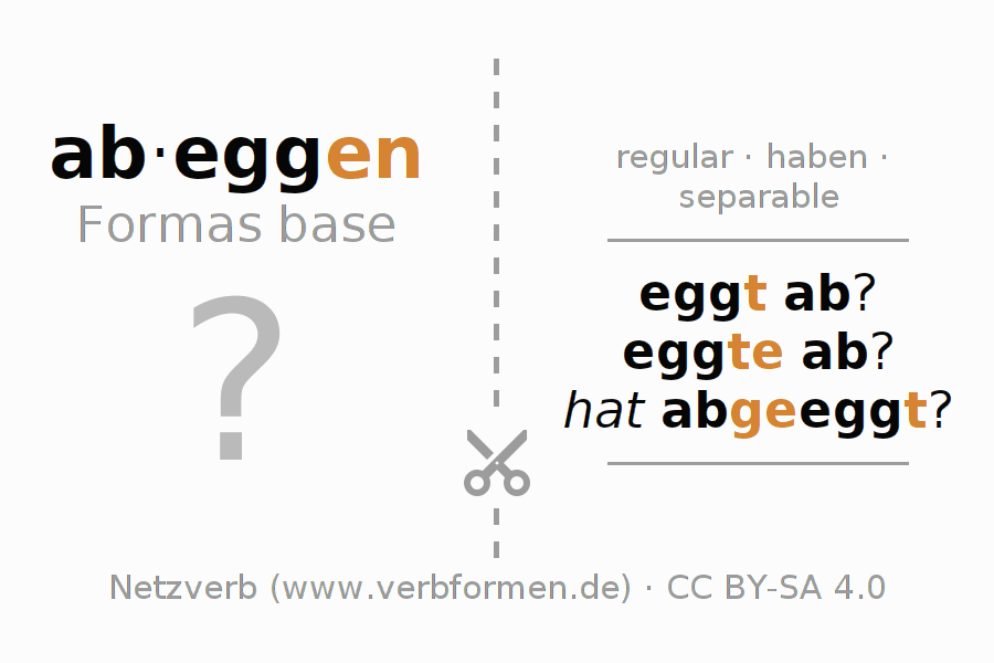 Las hojas de trabajo te ayudan para practicar con la conjugación de los verbos abeggen en la escuela o de forma autodidacta. El material de estudio es Open Educational Resources (OER), es decir, libre de licencias CC BY-SA 4.0 y pude ser descargado y utilizado de forma gratuita, por ejemplo para la escuela. Con este fin tenemos para ti varios tipos de hojas de trabajo para los verbos abeggen en forma de tablas de conjugación, acertijos y juegos. Todo el material esta disponible de forma gratuita para descargas PDF, imágenes y paginas web interactivas. Junto con los ejercicios hay innumerables ejemplos abeggen que te ayudan en el uso de los verbos.