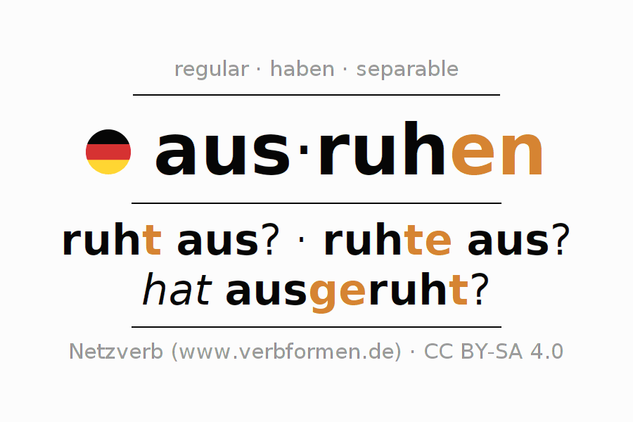 Las tablas de verbos muestran todas las construcciones del verbo ausruhen de forma clara en una tabla.