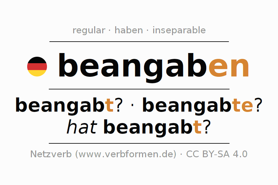 Las tablas de verbos muestran todas las construcciones del verbo beangaben de forma clara en una tabla.