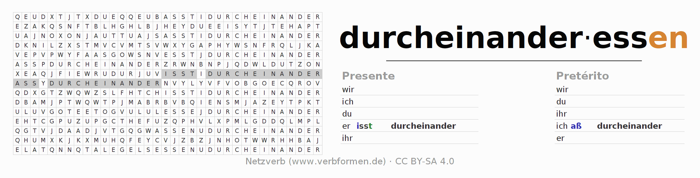 Las tablas de verbos muestran todas las construcciones del verbo durcheinanderessen de forma clara en una tabla.