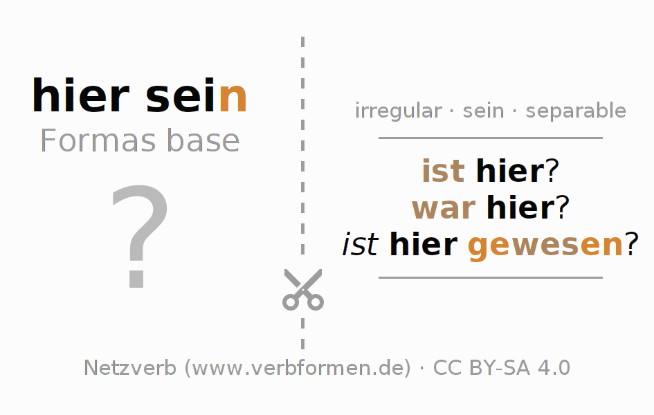 Las tablas de verbos muestran todas las construcciones del verbo hiersein de forma clara en una tabla.