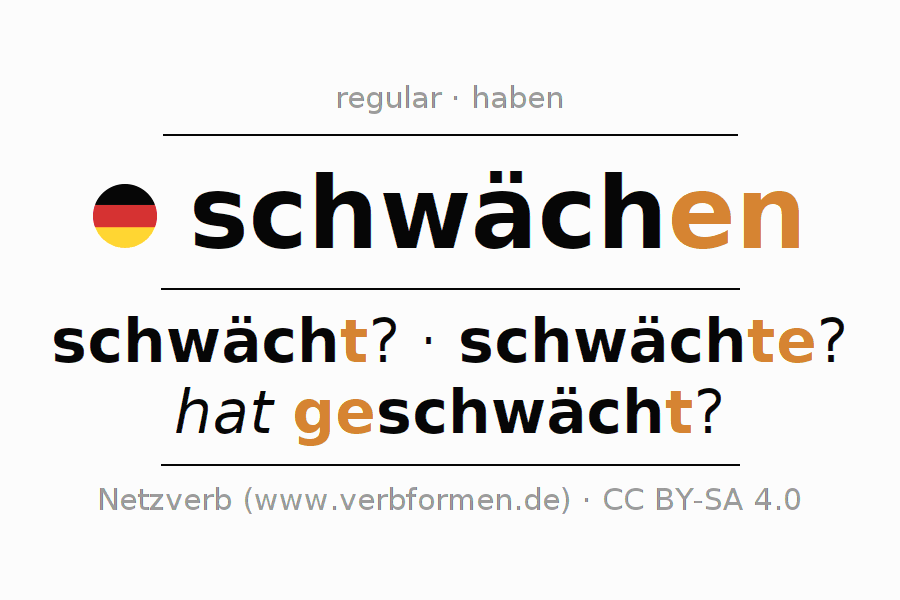 Las tablas de verbos muestran todas las construcciones del verbo schwächen de forma clara en una tabla.