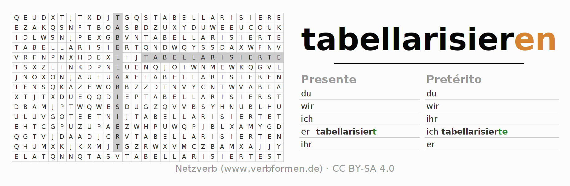 Juego de palabras cruzadas para todas las construcciones del verbo alemán tabellarisieren