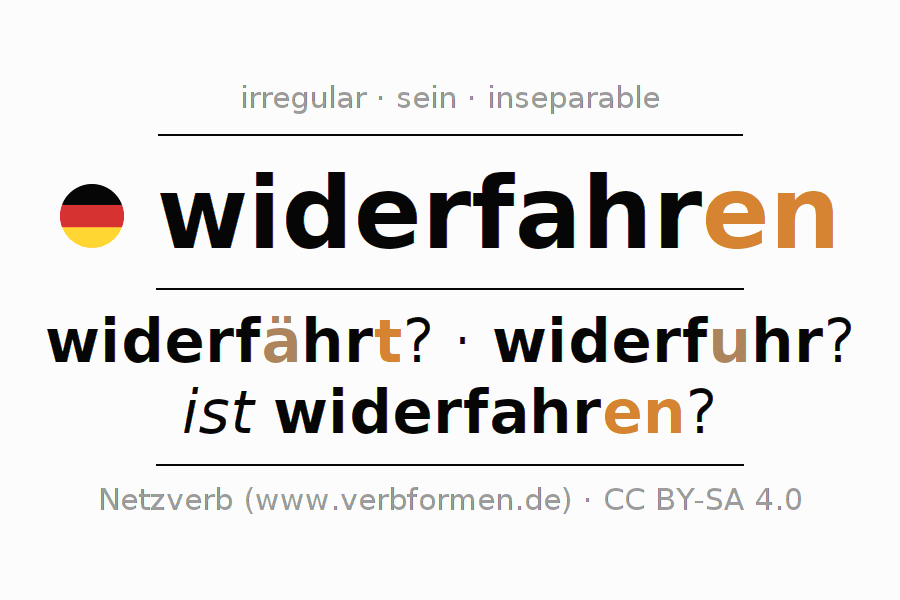 Las tablas de verbos muestran todas las construcciones del verbo widerfahren de forma clara en una tabla.