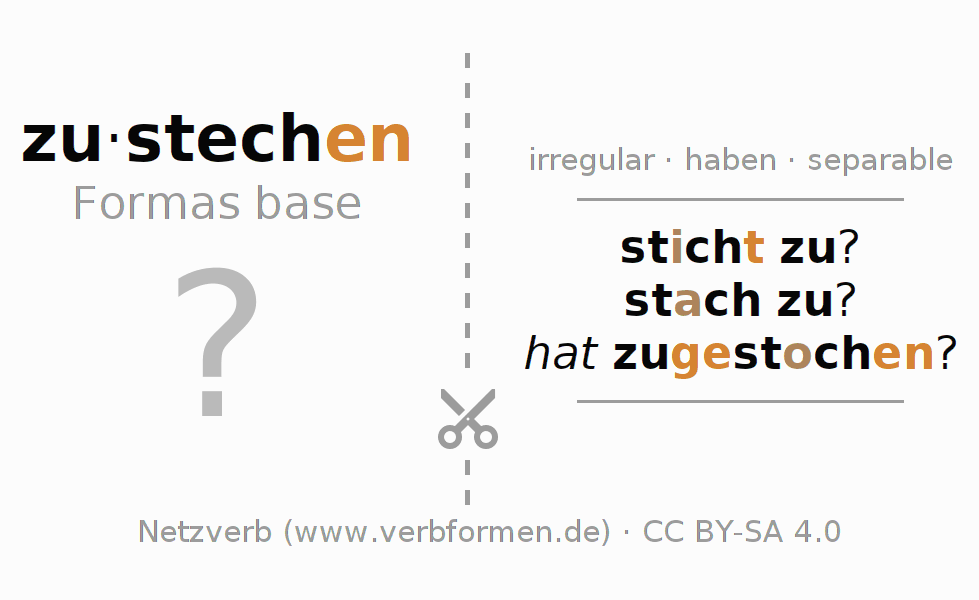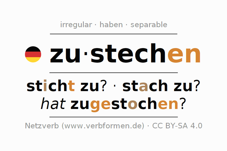 Las tablas de verbos muestran todas las construcciones del verbo zustechen de forma clara en una tabla.