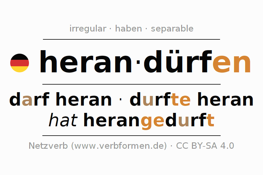 Las tablas de verbos muestran todas las construcciones del verbo herandürfen de forma clara en una tabla.