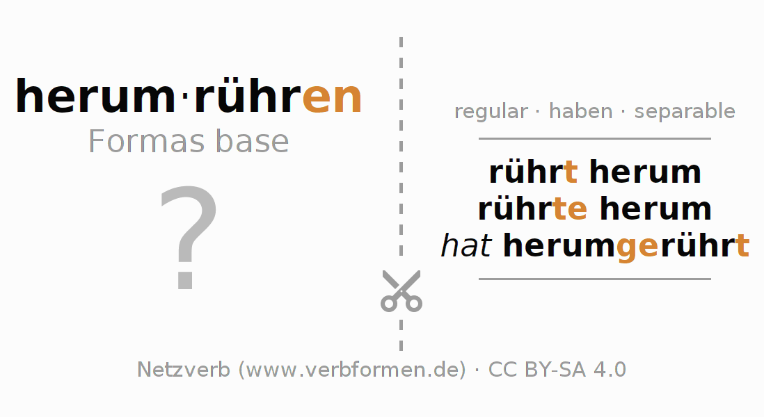 Las tablas de verbos muestran todas las construcciones del verbo herumrühren de forma clara en una tabla.