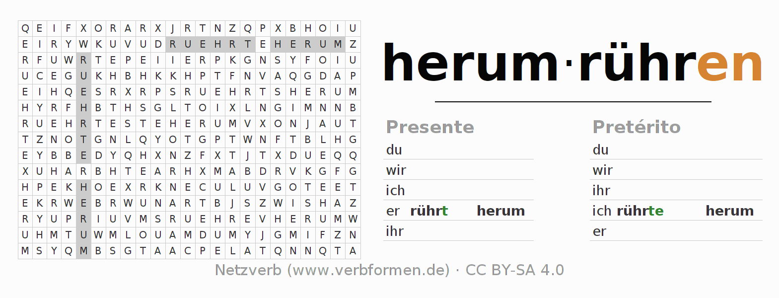 Hojas de trabajo para la conjugación del verbo herumrühren