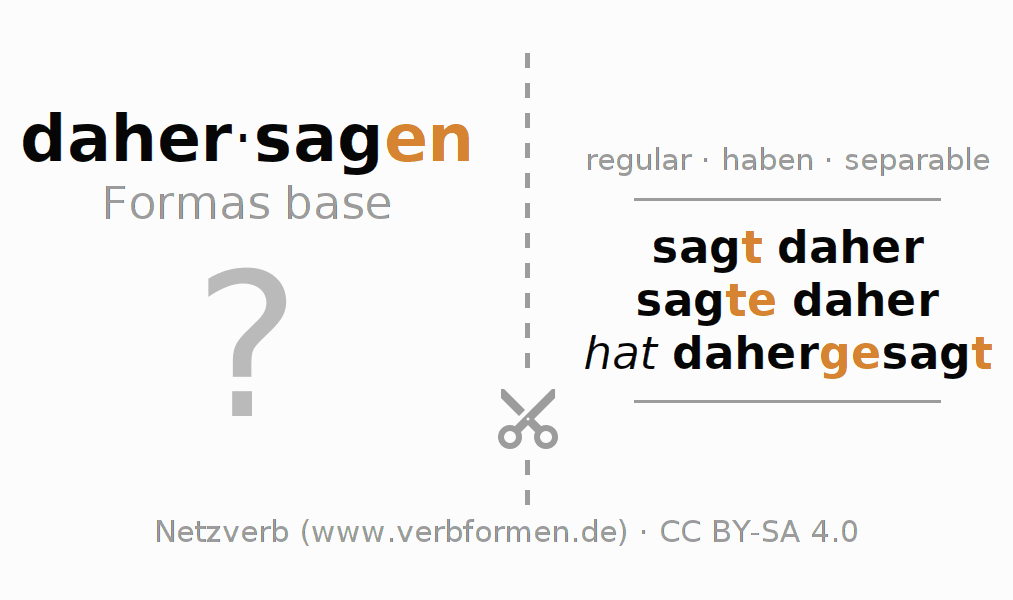 Tarjetas de aprendizaje para la conjugación del verbo alemán dahersagen