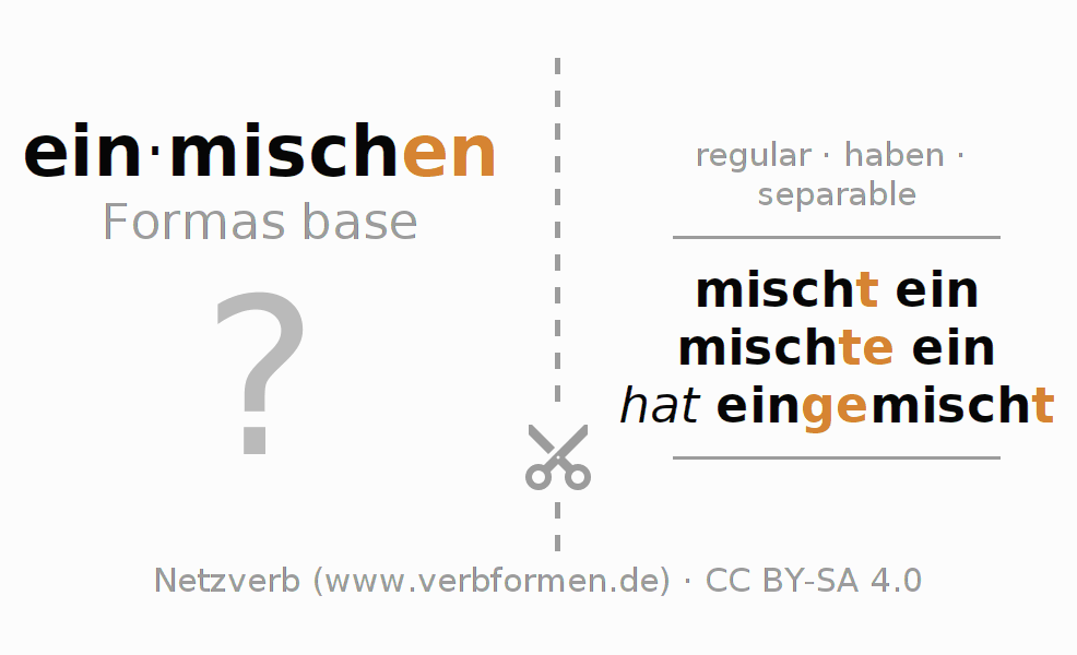 Tarjetas de aprendizaje para la conjugación del verbo einmischen