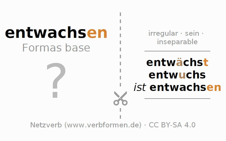 Tarjetas de aprendizaje para la conjugación del verbo alemán entwachsen