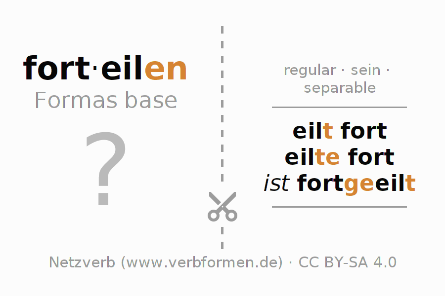 Con las cartas de aprendizaje puedes aprender y practicar cada forma verbal del alemán. Los ejercicios en las hojas de aprendizaje para el verbo forteilen están ordenados para que los puedas trabajar en serie. Las formas verbales requeridas se responden evocándolas de tu memoria y al final comparas tus respuestas con los datos en las fichas. Si has contestado correctamente se confirmará así tu aprendizaje, y en caso que las respuestas no concuerden, puedes utilizar los consejos mostrados para memorizar las formas que no conocías. De preferencia imprimes las cartas de aprendizaje y las doblas como está indicado. Así podrás estudiar varios verbos a la vez en forma de columna. También hay varios otros tipos de hojas de trabajo para los verbos. Todo el material de estudio es Open Educational Resources (OER), es decir, libre de licencias CC BY-SA 4.0 y puede ser descargado y utilizado de forma gratuita.