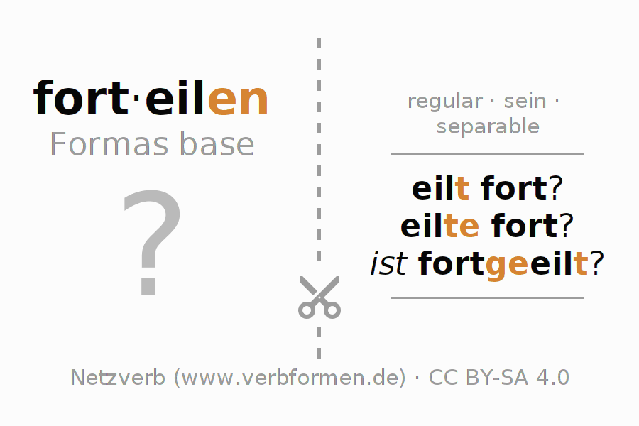 Con las cartas de aprendizaje puedes aprender y practicar cada forma verbal del alemán. Los ejercicios en las hojas de aprendizaje para el verbo forteilen están ordenados para que los puedas trabajar en serie. Las formas verbales requeridas se responden evocándolas de tu memoria y al final comparas tus respuestas con los datos en las fichas. Si has contestado correctamente se confirmará así tu aprendizaje, y en caso que las respuestas no concuerden, puedes utilizar los consejos mostrados para memorizar las formas que no conocías. De preferencia imprimes las cartas de aprendizaje y las doblas como está indicado. Así podrás estudiar varios verbos a la vez en forma de columna. También hay varios otros tipos de hojas de trabajo para los verbos. Todo el material de estudio es Open Educational Resources (OER), es decir, libre de licencias CC BY-SA 4.0 y puede ser descargado y utilizado de forma gratuita.