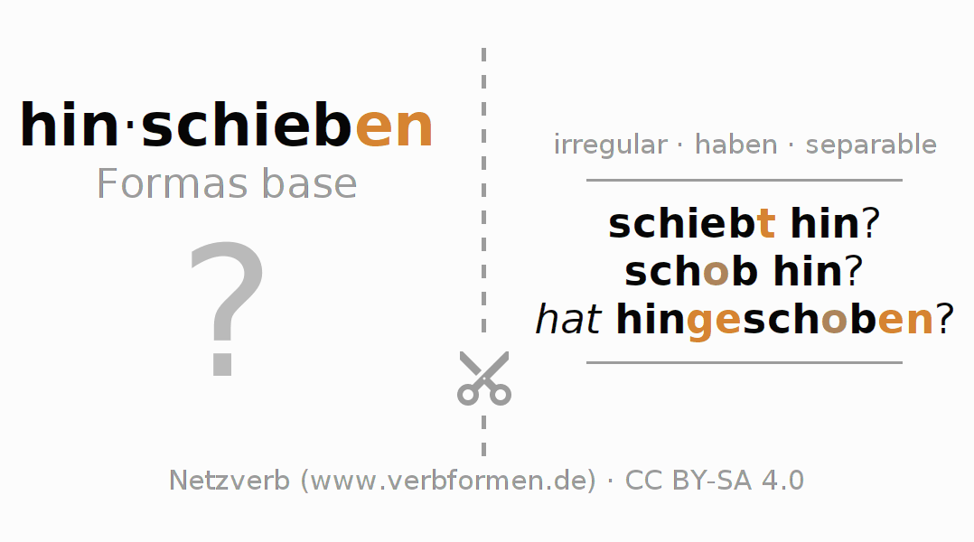 Tarjetas de aprendizaje para la conjugación del verbo alemán hinschieben