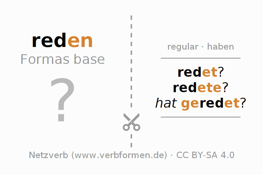 Con las cartas de aprendizaje puedes aprender y practicar cada forma verbal del alemán. Los ejercicios en las hojas de aprendizaje para el verbo reden están ordenados para que los puedas trabajar en serie. Las formas verbales requeridas se responden evocándolas de tu memoria y al final comparas tus respuestas con los datos en las fichas. Si has contestado correctamente se confirmará así tu aprendizaje, y en caso que las respuestas no concuerden, puedes utilizar los consejos mostrados para memorizar las formas que no conocías. De preferencia imprimes las cartas de aprendizaje y las doblas como está indicado. Así podrás estudiar varios verbos a la vez en forma de columna. También hay varios otros tipos de hojas de trabajo para los verbos. Todo el material de estudio es Open Educational Resources (OER), es decir, libre de licencias CC BY-SA 4.0 y puede ser descargado y utilizado de forma gratuita.