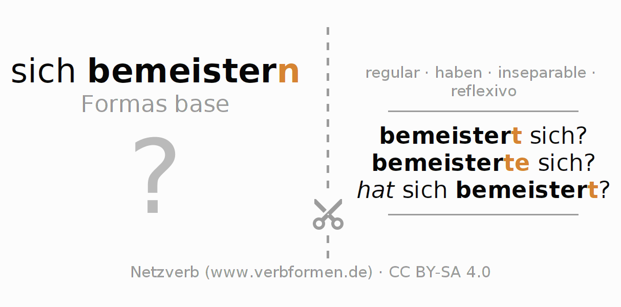 Tarjetas de aprendizaje para la conjugación del verbo alemán sich bemeistern