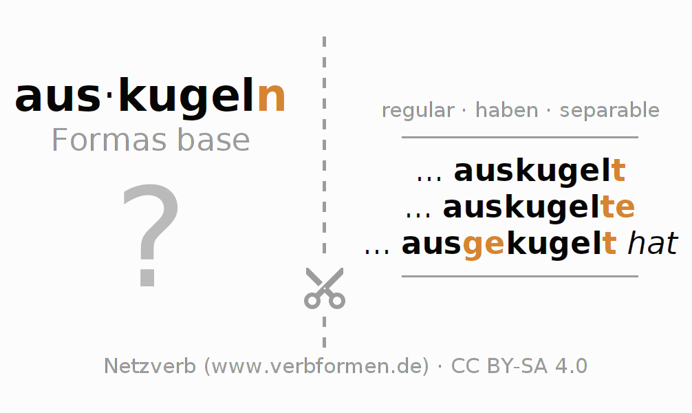 Con las cartas de aprendizaje puedes aprender y practicar cada forma verbal del alemán. Los ejercicios en las hojas de aprendizaje para el verbo auskugeln están ordenados para que los puedas trabajar en serie. Las formas verbales requeridas se responden evocándolas de tu memoria y al final comparas tus respuestas con los datos en las fichas. Si has contestado correctamente se confirmará así tu aprendizaje, y en caso que las respuestas no concuerden, puedes utilizar los consejos mostrados para memorizar las formas que no conocías. De preferencia imprimes las cartas de aprendizaje y las doblas como está indicado. Así podrás estudiar varios verbos a la vez en forma de columna. También hay varios otros tipos de hojas de trabajo para los verbos. Todo el material de estudio es Open Educational Resources (OER), es decir, libre de licencias CC BY-SA 4.0 y puede ser descargado y utilizado de forma gratuita.