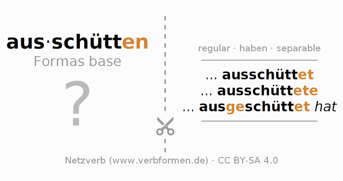 Tarjetas de aprendizaje para la conjugación del verbo alemán ausschütten