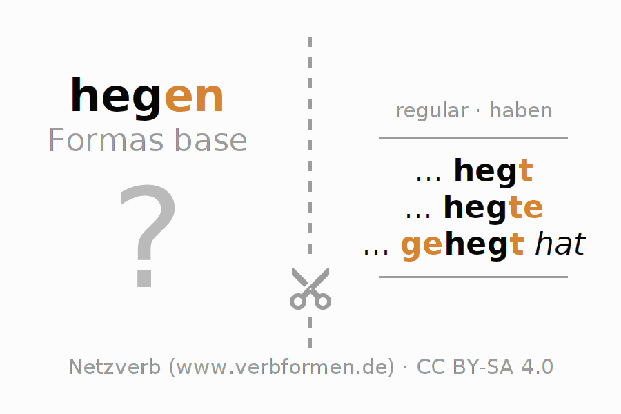 Con las cartas de aprendizaje puedes aprender y practicar cada forma verbal del alemán. Los ejercicios en las hojas de aprendizaje para el verbo hegen están ordenados para que los puedas trabajar en serie. Las formas verbales requeridas se responden evocándolas de tu memoria y al final comparas tus respuestas con los datos en las fichas. Si has contestado correctamente se confirmará así tu aprendizaje, y en caso que las respuestas no concuerden, puedes utilizar los consejos mostrados para memorizar las formas que no conocías. De preferencia imprimes las cartas de aprendizaje y las doblas como está indicado. Así podrás estudiar varios verbos a la vez en forma de columna. También hay varios otros tipos de hojas de trabajo para los verbos. Todo el material de estudio es Open Educational Resources (OER), es decir, libre de licencias CC BY-SA 4.0 y puede ser descargado y utilizado de forma gratuita.