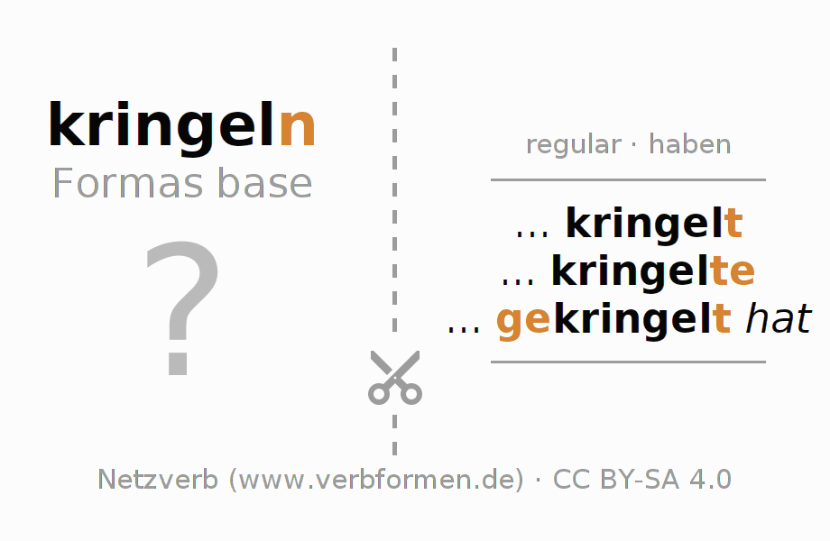 Guía: imprime y corta las cartas de aprendizaje para el verbo kringeln. Después mezcla y apila cartas con diferentes verbos. Así podrás ir sacando las cartas de una por una. Sin ojear tienes que evocar de tu memoria los datos en las cartas. Para comprobar tus respuestas utiliza la información que aparece en las hojas de aprendizaje.
