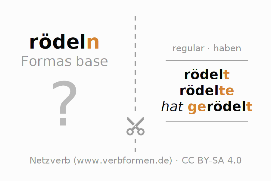 Con las cartas de aprendizaje puedes aprender y practicar cada forma verbal del alemán. Los ejercicios en las hojas de aprendizaje para el verbo rödeln están ordenados para que los puedas trabajar en serie. Las formas verbales requeridas se responden evocándolas de tu memoria y al final comparas tus respuestas con los datos en las fichas. Si has contestado correctamente se confirmará así tu aprendizaje, y en caso que las respuestas no concuerden, puedes utilizar los consejos mostrados para memorizar las formas que no conocías. De preferencia imprimes las cartas de aprendizaje y las doblas como está indicado. Así podrás estudiar varios verbos a la vez en forma de columna. También hay varios otros tipos de hojas de trabajo para los verbos. Todo el material de estudio es Open Educational Resources (OER), es decir, libre de licencias CC BY-SA 4.0 y puede ser descargado y utilizado de forma gratuita.