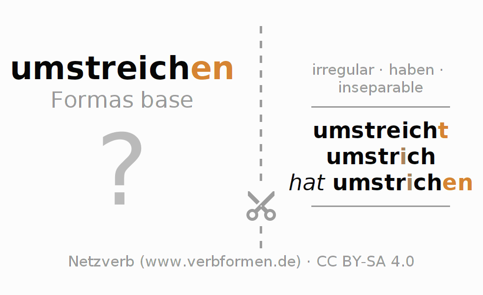 Tarjetas de aprendizaje para la conjugación del verbo alemán umstreichen