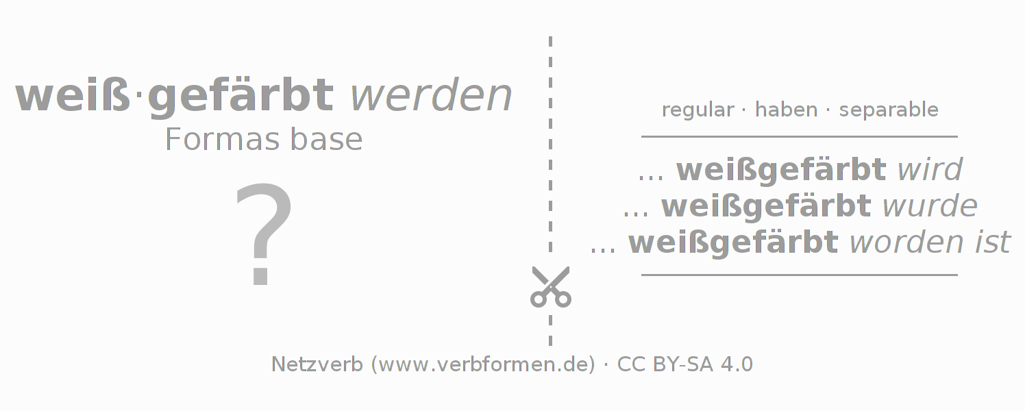 Tarjetas de aprendizaje para la conjugación del verbo alemán weißfärben