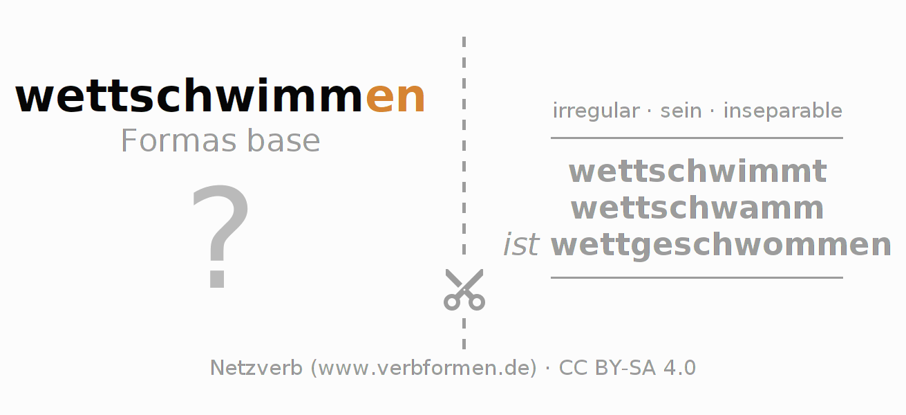 Tarjetas de aprendizaje para la conjugación del verbo alemán wettschwimmen