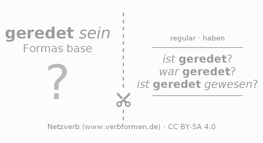 Con las cartas de aprendizaje puedes aprender y practicar cada forma verbal del alemán. Los ejercicios en las hojas de aprendizaje para el verbo reden están ordenados para que los puedas trabajar en serie. Las formas verbales requeridas se responden evocándolas de tu memoria y al final comparas tus respuestas con los datos en las fichas. Si has contestado correctamente se confirmará así tu aprendizaje, y en caso que las respuestas no concuerden, puedes utilizar los consejos mostrados para memorizar las formas que no conocías. De preferencia imprimes las cartas de aprendizaje y las doblas como está indicado. Así podrás estudiar varios verbos a la vez en forma de columna. También hay varios otros tipos de hojas de trabajo para los verbos. Todo el material de estudio es Open Educational Resources (OER), es decir, libre de licencias CC BY-SA 4.0 y puede ser descargado y utilizado de forma gratuita.