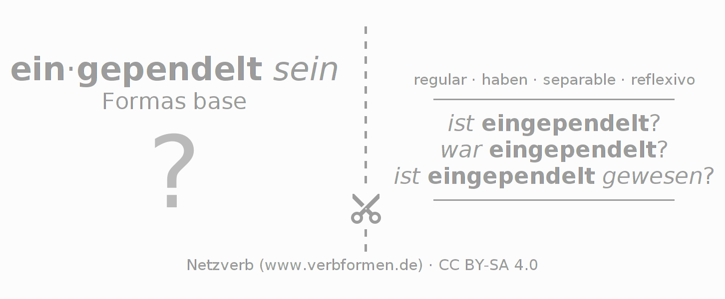 Guía: imprime y corta las cartas de aprendizaje para el verbo sich einpendeln. Después mezcla y apila cartas con diferentes verbos. Así podrás ir sacando las cartas de una por una. Sin ojear tienes que evocar de tu memoria los datos en las cartas. Para comprobar tus respuestas utiliza la información que aparece en las hojas de aprendizaje.