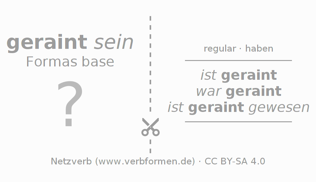Guía: imprime y corta las cartas de aprendizaje para el verbo rainen. Después mezcla y apila cartas con diferentes verbos. Así podrás ir sacando las cartas de una por una. Sin ojear tienes que evocar de tu memoria los datos en las cartas. Para comprobar tus respuestas utiliza la información que aparece en las hojas de aprendizaje.