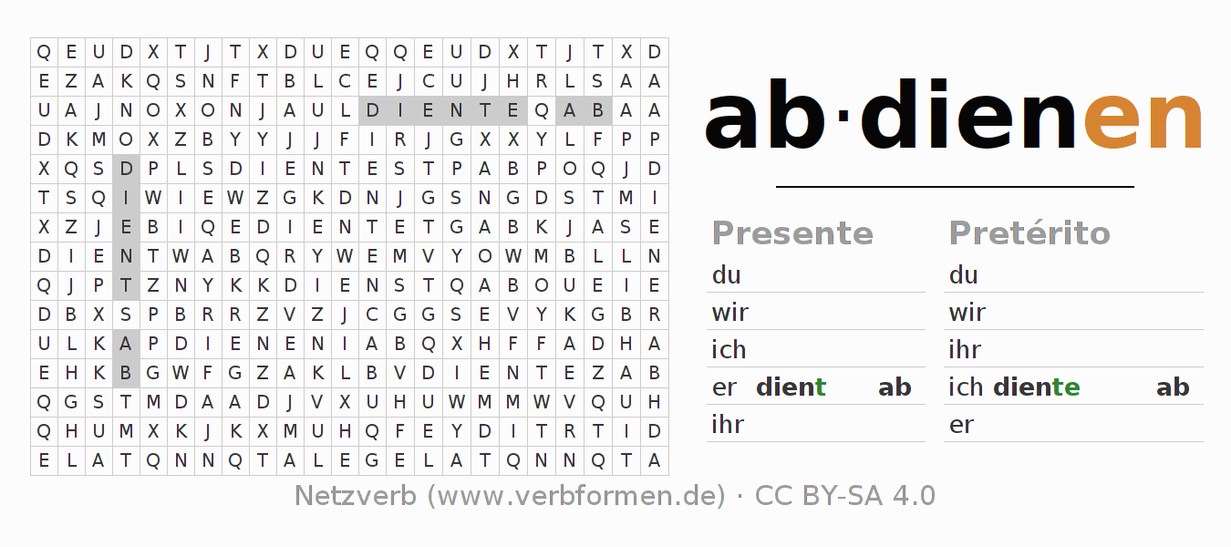 Juego de palabras cruzadas para todas las construcciones del verbo alemán abdienen