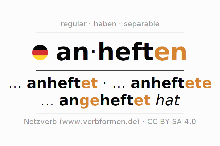 Tarjetas de aprendizaje, hojas de aprendizaje para todas las conjugaciones del verbo anheften