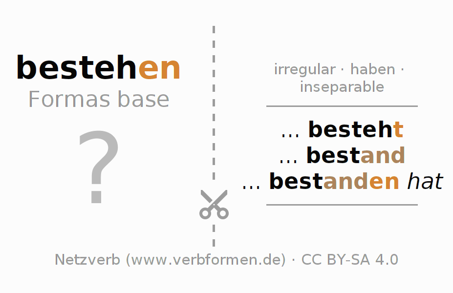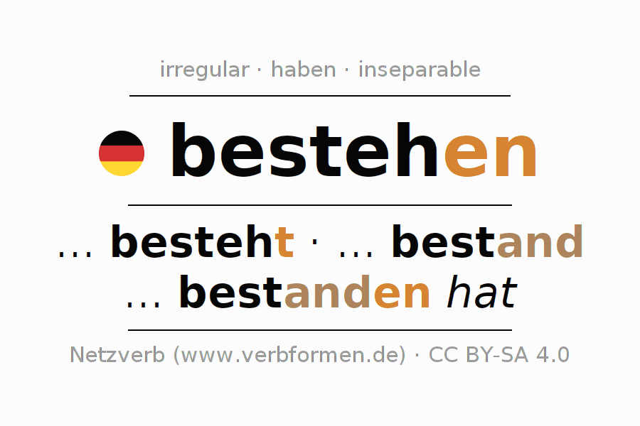 Las tablas de verbos muestran todas las construcciones del verbo bestehen de forma clara en una tabla.